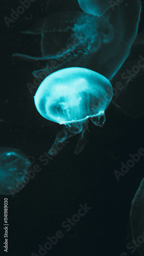 iPhone Cases: Méduse rapprochée bleue, fond sombre abyssal bioluminescence, aquarium, profondeurs océanique 2.