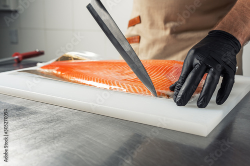 salmon, fillet, large, whole, chef, cardboard box, vacuum, take out, extract, film, unpack, chopping board, knife, cut, steak, freshness, sea, red, seafood, cook, raw, food, orange, piece, background, healthy, meat, epicure, package, cookery, fish, fresh, protein, delicacy, pack, salted, meal, studio, product, natural, glacé, eating, trout, salt, albuminous, slicing, side, plastic, packagedSHARE