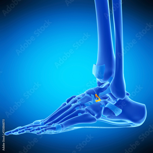 three-dimensional, anatomy, ankle, biology, body, bone, bifurcate, blue, foot, healthy, human, illustration, isolated, joint, ligament, medial, medicals, orange, science, skeleton, tendon, toe, lateralSHARE