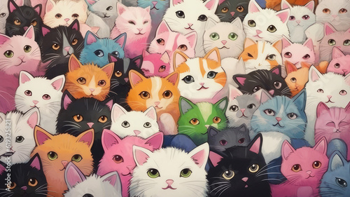 anime, kitten, cat, pet, felino, many, group, domestic, face, breed, portrait, exotic, creature, short hair, animal, team, row, mammal, white, togetherness, vertebrate, panoramic, isolated, young, blue, pedigree, blackSHARE