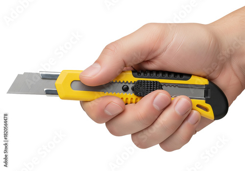 hand, knife, utility, cutting, tool, craft, precision, blade, sharp, yellow, industrial, construction, repair, equipment, metal, object, manual, work, instrument, steel, design, hardware, project, grip, handle, ergonomic, hard-wearing, strength, professional, material, carpenter's shop, renovation, build, bricolage, improvement, maintenance, job, men at work, caution, safety, danger, risk, skill, expertise, performanceSHARE