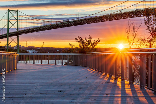 Prints and Posters: Sun under the bridge in Dartmouth, Nova Scotia, Canada