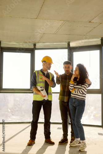 adviser, apartment, blueprint, builder, building, check, client, collaboration, communication, construction, constructor, control, convince, cooperation, couple, client, design, developer, discussion, draft, engineer, estate, helmet, house, industrial, inspection, investor, manager, meeting, occupation, plan, professional, project, property, rebuild, reconstruction, renew, renovation, service, site, spouse, supervisor, talk, uniform, vest, window, men at work, workplaceSHARE