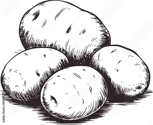 Shower Curtain: Four unpeeled potatoes black and white monochrome