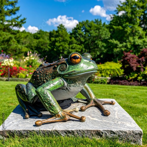 frog, sculpture, garden, art, green, bronze, stone, nature, detail, flower, plant, tree, landscape, sunny, daylight, park, amphibian, wildlife, decorative, metal, bas-relief, statuesque, realistic, nature scene, closeup, botanicalSHARE