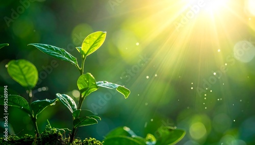 sunlight, growth, leaf, nature, green, plant, germinating, fresh, tea, morning, dew, brightness, blurred, bokeh, sharpened, detail, forest, jungle, vibrant, healthy, life, spring, emerging, abundant, freshness, vigorous