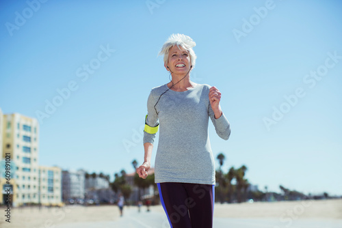 senior, woman, power, walk, beach, active, adult, alone, blue, boardwalk, copy space, energy, enjoy, entertainment, exercise, fitness, front view, grey, hair, happy, earphones, health, healthy, jog, jogger, lifestyle, listen, living, low angle, music, 1, outdoors, people, person, retirement, run, runner, short, sky, smile, summer, sunny, technology, toothy, travel, vacation, vitality, whiteSHARE