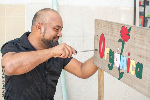 man, screwing, screwdriver, wood, signs, smiling, handyman, organic, bricolage, making, assembling, repairing, construction, male, adult, craftsman, men at work, working, happy, cheerful, service, carpenter's shop, fixing, building, installation, professional, manual, tool, hand, home, improvement, entrepreneur, small, business, craft, decoration, art, nature, natural, farm, market, product, healthy, sustainable, environment, eco, friendly, green, foodSHARE