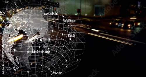 Shower Curtain: Translucent wireframe globe rotating after telemetry feed, updating labels while mapping traffic