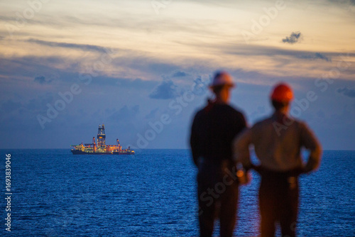 offshore, oil, gas, energy, gulf of mexico, louisiana, exploration, production, global warming, sea, water, remote, cloud, hard hat, looking out, us