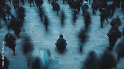 person, alone, crowded, blurred, figure, surrounding, loneliness, isolation, solitude, sitting, place, concept, emotion, feeling, social, disconnection, urban, modern, lifestyle, alienation, disconnected, anti-social, detached, remote, secluded, seclusion, withdrawn, isolatedSHARE
