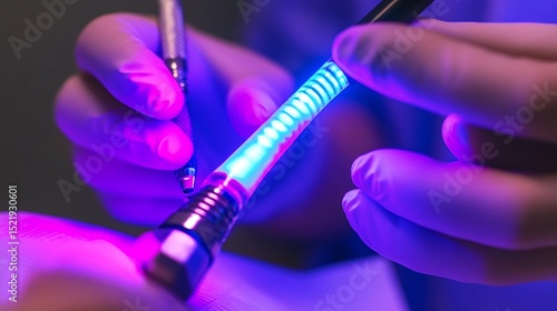 Tote Bags: Dentist using a UV light to harden dental bonding material on a patients tooth glowing effect advanced dental procedure