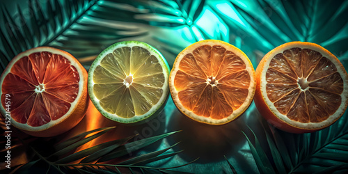"Fresh Citrus Slices Lined Up – Healthy Tropical Fruits"