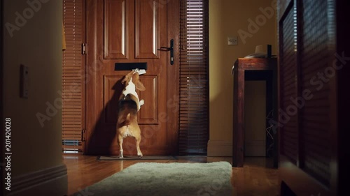4k Dolly of House Front Door, Dog and Child Running after Letter