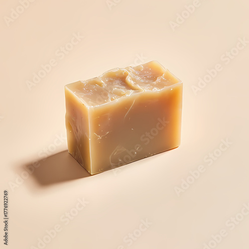 Elegant gold soap on beige background with gentle shadows and a luxury feel