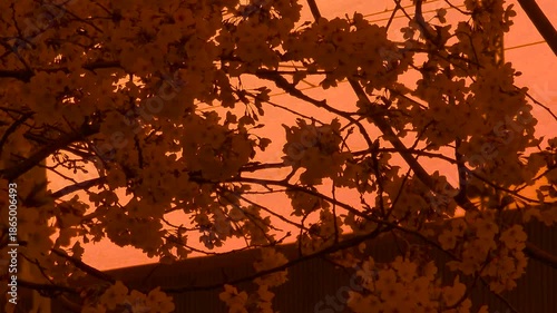 Pastel cherry blossoms at golden hour