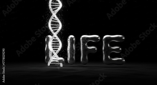 "LIFE" in Liquid Metal with Spiraling DNA Helix Dissolving into Stardust | Elegant Biology