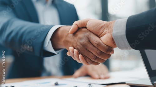 Businessman reviewing quarterly financial report with tablet and graphs AI technology concept