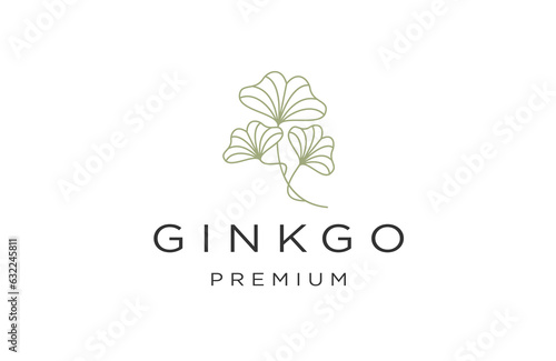 Ginkgo leaf with line art style logo design template flat vector