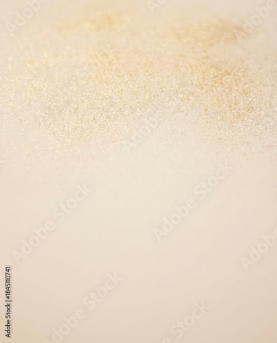 Gold glitter dust on beige paper background with soft gradient and copy space