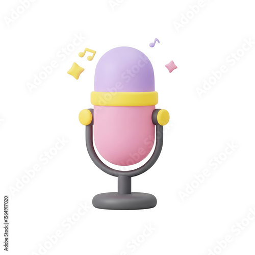 Vibrant cartoon microphone with musical notes on a clean black backdrop