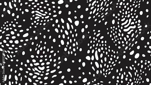 Seamless monochrome pattern featuring dispersed organic white shapes on black