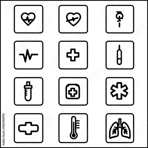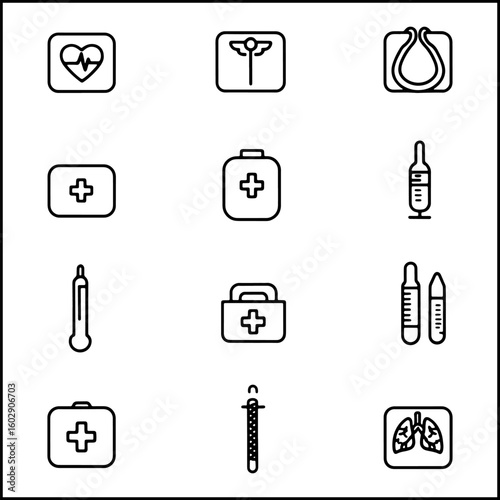 "Minimal Line Art Health and Medical Icon Set – 9 Clean Black & White Symbols on White Background"