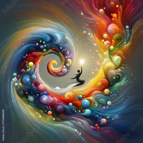 "Vibrant Swirls: A Person and Their Cat"