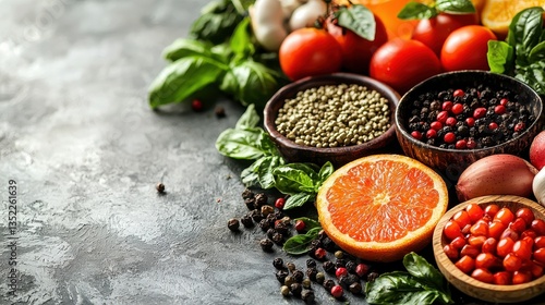 "Fresh Fruits and Vegetables Arrangement on Table"