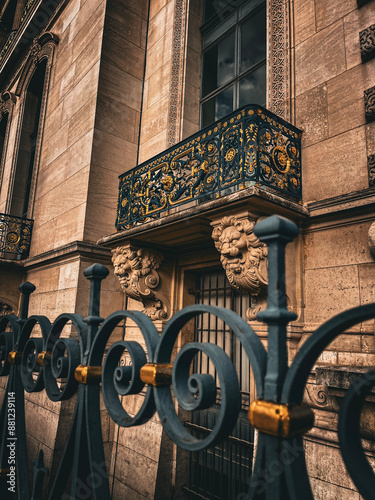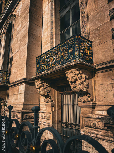 "Elegance Above: Ornate Parisian Balcony" – Showcasing exquisite architectural details above the bustling city streets.
