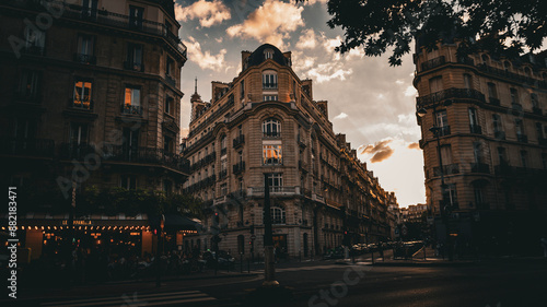 Sunset on the Streets of Paris - The warm glow of the setting sun bathing Parisian facades.
