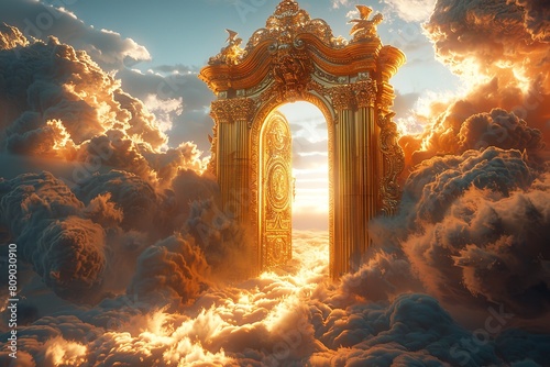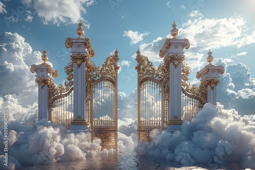 "Heaven's Entrance: Clouds and Pearly Gates on Transparent Background"