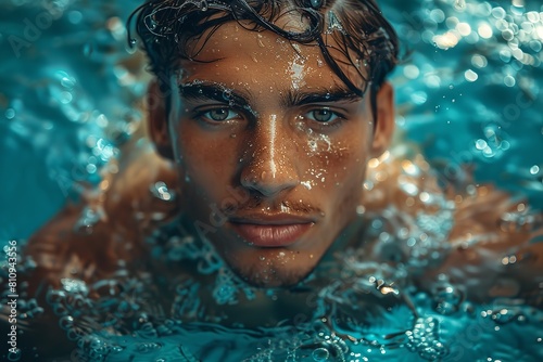 "Top-Down View of Male Swimmer Practicing Butterfly Stroke in Pool: Dedicated Athlete Prepares for Championship with Intense Training. Aerial Shot Capturing Training Session"