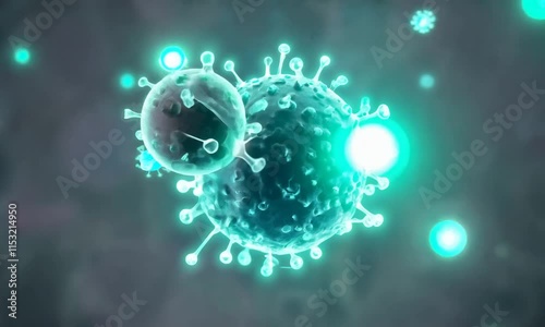 "Antibody-Virus Interaction Animation with Glowing Immune Cells and Smooth Camera Movements in a Plasma Environment