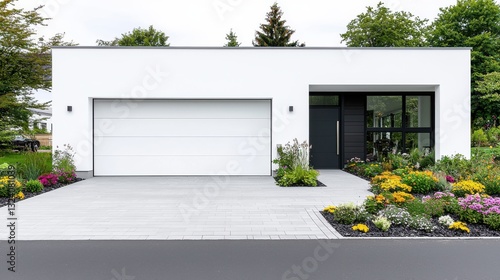 Modern White House Exterior, Landscaping, Garage