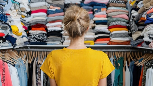 Woman Overwhelmed by Clothes in Closet
