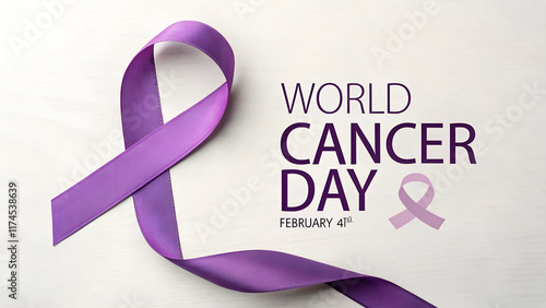 "Create a visual representation for World Cancer Day, celebrated on February 4th. The design should prominently feature a purple ribbon, symbolizing awareness and support for cancer patients. Include