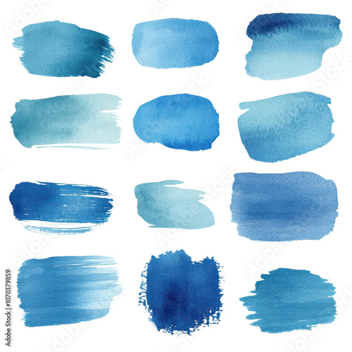 A collection of watercolor clouds in various shapes, perfect for backgrounds, designs, and artistic projects, isolated on a transparent background.