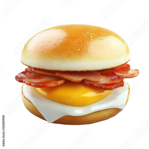 Delicious breakfast sandwich with egg, bacon, and creamy sauce, perfect for morning indulgence., isolated on a transparent background.