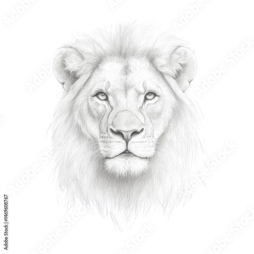 A majestic white lion head illustration with detailed fur and expressive features on a white isolated background.