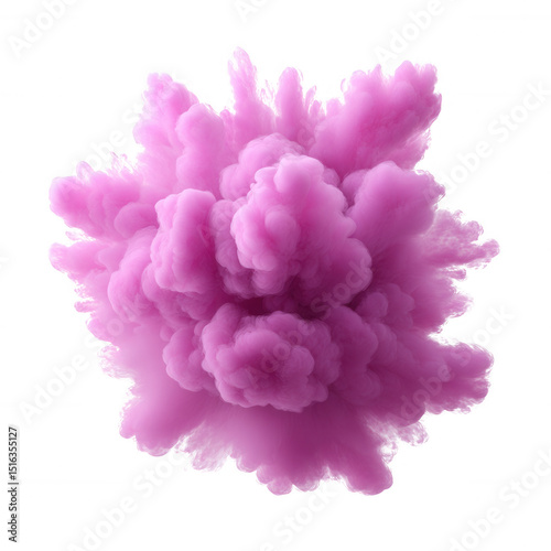 Vibrant pink smoke or cloud explosion in a dynamic and artistic formation, white isolated background.