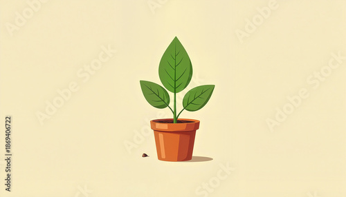 green plant with large leaves growing in a terracotta pot against a light background representing growth and nature concepts
