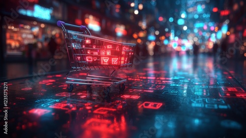 "Shopping in the Digital Age" – Futuristic 3D Shopping Cart with Social Media Icons