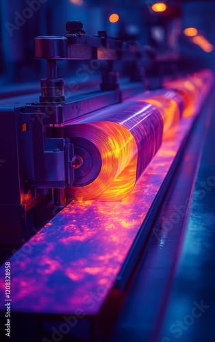 "Printing Press in Action with Colorful Rolls of Paper and Silk Screen Printing Technology"