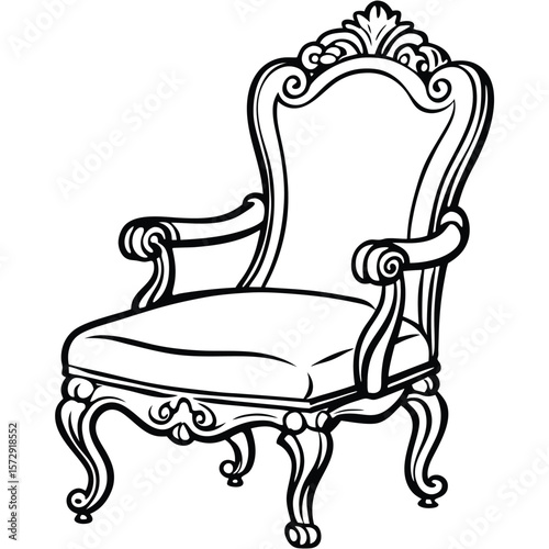 "Antique Chair Line Art Vector – Vintage Illustration"