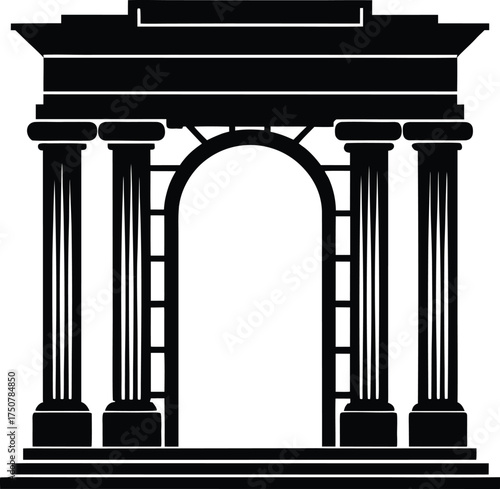 Grand Archway with Columns Classical Roman Architecture Silhouette Black Icon Design Element Historic Building Entrance