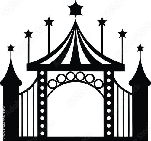 Circus Tent Gate Silhouette Vector Illustration Funfair Entrance Design Carnival Amusement Park Archway with Stars