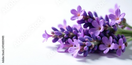 A fragrant bundle of fresh lavender, blossoms vibrant purple against a pristine white background , lavender, nature, bloom