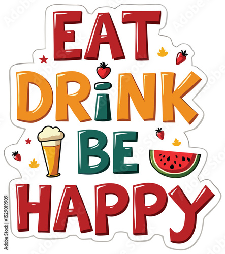 "Eat, Drink, Be Happy" Vibrant Food and Drink Quote