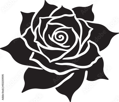 "Bold Rose Silhouette – Floral Vector Art" "Black Rose Outline – Modern Tattoo Style Design" "Minimalist Rose Emblem – Decorative Floral Icon"